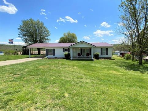 Spacious, lovingly maintained 2 Bedroom, 2 full Bathroom ranch home w/ a large flat yard*Sm Detached Garage*Huge Great Room w/ laminate floors*Fully equipped Kitchen w/ Breakfast area, walkout to the expansive carport/ covered patio, wood cabinets & all appliances to stay*Laundry Room w/ washer & newer dryer*Laminate floors in both Bedrooms*Vaulted ceilings*Newer A/C & new water heater*Metal roof*Tons of parking*Serene covered front porch perfect for relaxing*Natural gas heat, city water & sewer*Close to the expressway*Overlooks the valley*One floor living, easy in--easy out*Quick possession.